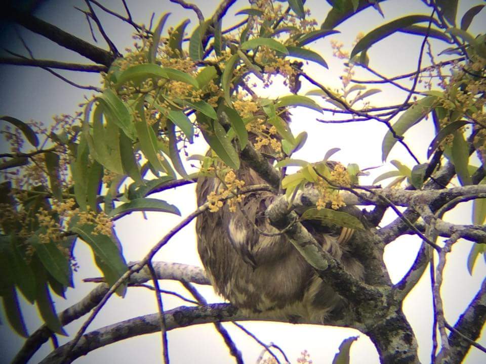 Nous allons ensuite un dernière fois à la chasse au caïman et nous ne rentrerons pas bredouille cette fois si puisque nous débusquons de grands yeux oranges au ras de l’eau et à l’abri de la végétation. Nous nous rapprochons donc de lui et sa tranquillité fut rompu par les cris et agitation d’Elvis (notre guide devant savoir parler plusieurs langues animales) ce qui nous permettra de pouvoir le contempler à quelques centimètres de notre pirogue. Si celui de notre « proie » l’est naturellement, notre sang avait toutes les raisons de se glacer face aux yeux profonds de notre reptile.